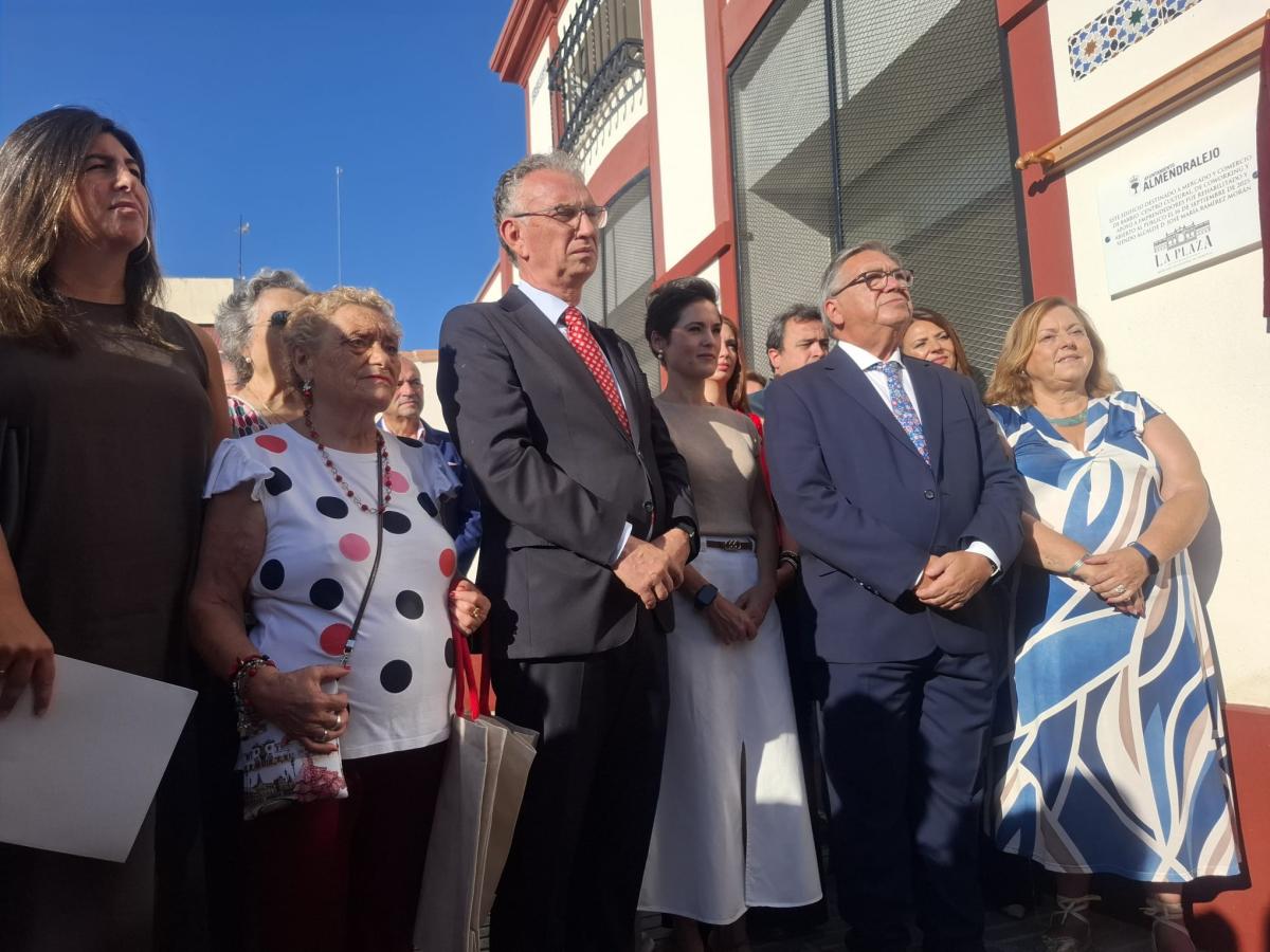 Al acto han asistido el delegado del Gobierno en Extremadura, José Luis Quintana; la presidenta del Diputación de Badajoz, Raquel del Puerto; la secretaria general de Comercio, Sol Giralt; los concejales de Comercio y Obras, Josefina Barragán y Juan Manuel Forte, además de compañeros de la Corporación Municipal. La placa ha sido descubierta por la presidenta de la barriada del Mercado, Matilde Carrizosa y bendecido por el sacerdote Rafael Corraliza.